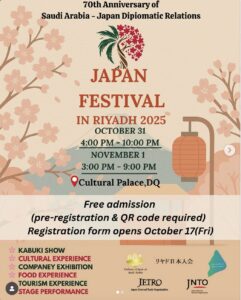 サウジアラビア【ジャパンフェスティバルinリヤド 2025】にて2025年10月31日(金)– 11月1日(土)の期間でパフォーマンスとWORKSHOPを開催します