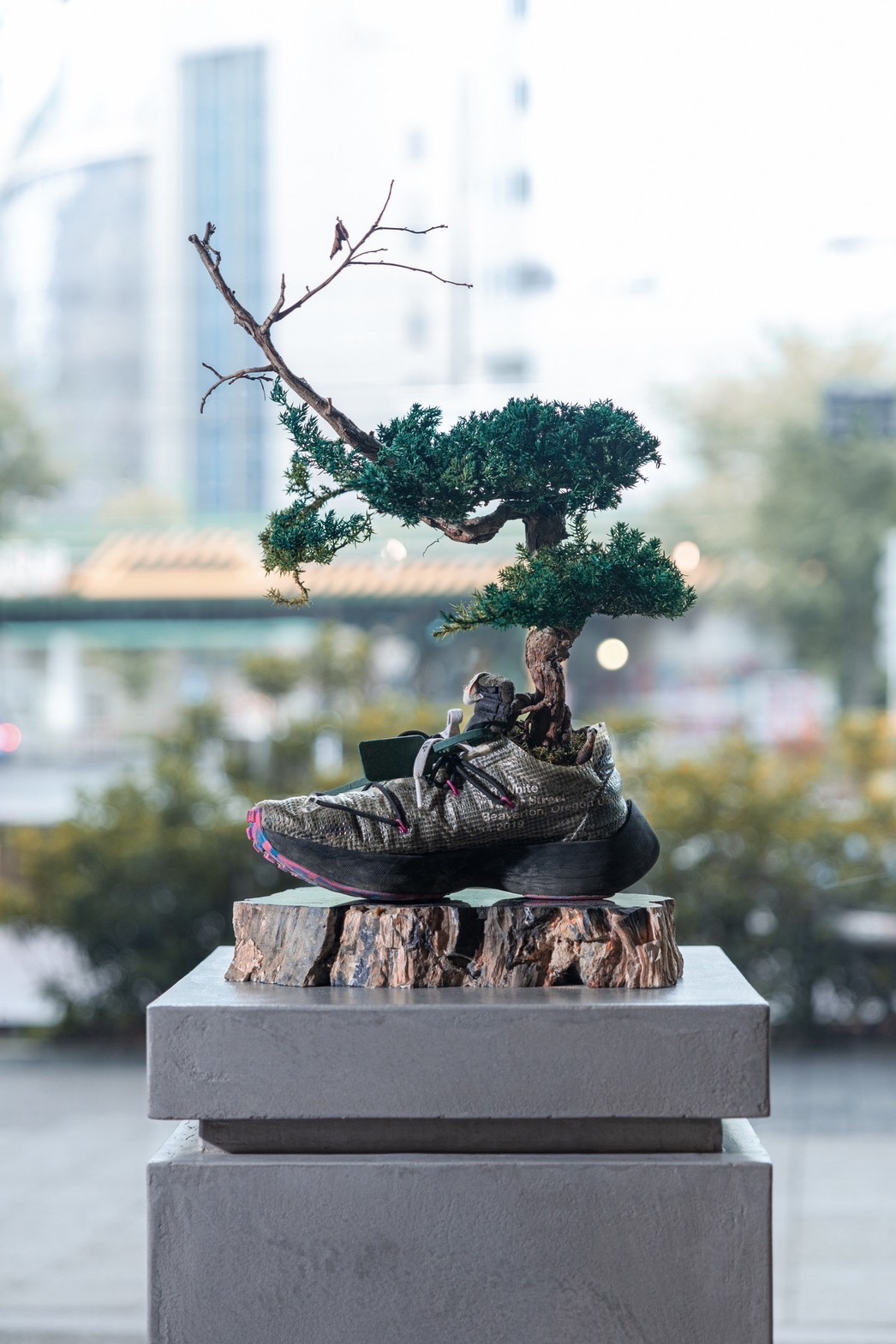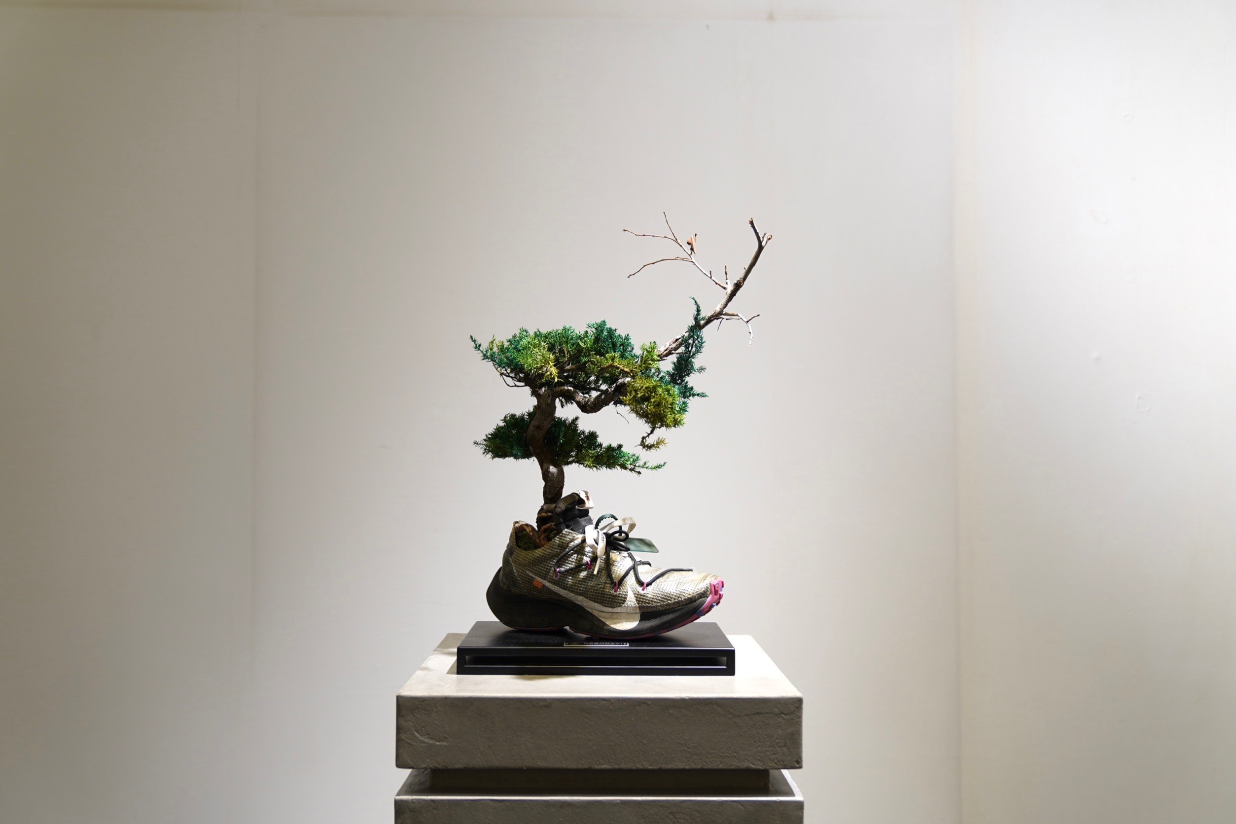 枯れてしまい廃棄する運命にあった盆栽をドライ化し、新たに枝葉を付け替えた盆栽へとアップサイクルしたREBONSAIをプロダクトしている。